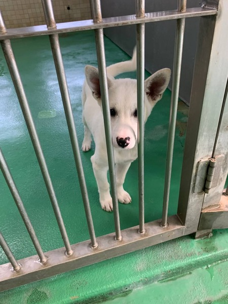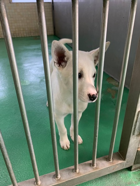 | 特徴(性格など) | 〜5/2追記〜 4匹は里親様が決まりました! あとNo.14683 白い男の子 1匹が家族を待っています 生後約5か月位、とっても可愛い甘えん坊で人懐こいやんちゃな子犬達(男の子2匹と女の子3匹)5兄妹ฅ•ﻌ•ฅ 元気に兄妹喧嘩もしながら元気にワチャワチャ過ごしています。 優しい職員さん方が大丈夫だよ、幸せになれます様にと毎日触れ合い、声掛けしながら一生懸命にお世話してくださっています。 抱っこされる事にはまだ慣れていないようで固まりますが全然大丈夫、愛嬌たっぷりに尻尾フリフリ寄ってきて無邪気に甘えてきますฅ•ﻌ•ฅ 恐らく捨てられたのか…?分かりませんが被毛や皮膚は綺麗です。ですが栄養状態、健康状態がいいとは言い切れません。 何か病気や障害が有るのか無いのかも分かりません。 今後体調の急変もあり得ることを念頭に置き譲渡後は早急な病院受診が可能なご家庭を希望しておりますm(_ _)m 現在は1日に2回、ご寄付で送って頂いた栄養価の高い良質な仔犬用と離乳食缶詰を食べています。 まだまだ幼い為、長時間のお留守番は出来ません。 寂しくて夜鳴きする子もいます。 子犬は排泄も頻回ですし甘噛み期も始まっていますฅ•ﻌ•ฅ 今後の健康な成長の為に良質なフードを与える事が可能な方、育てる自信と覚悟のある方、飼育経験のある方が望ましいです m(_ _)m まだお散歩デビューは出来ませんが今後成長していく中で、急な物音や知らない場所にビックリして怖がって、咄嗟に逃げよう、逃げようとする可能性も大いにあり得る事だと思いますし、その時の力、引きの強さも想定し、急な走り出しや高い塀や壁・柵の飛び越え・急な方向転換や首を振って後退りからの首輪抜け、胴輪抜けにはご用心です! 呼び戻しを教えなければ(呼び戻しを覚えても雷に驚いたりすると)もし逃がしてしまったらピューっと走って行ってしまうタイプかもしれません!(>_<) もし逃がしたらもう捕まえられない!とお考えくださいm(_ _)m ※繰り返しになりますがどんな子であっても、慣れてきても常に、脱走・逃走には充分な注意と最大限の配慮をお願いしております m(_ _)m 適切に制御し、躾や朝晩のお散歩、運動の時間をしっかり取ることの出来る、沢山優しく触れ合って頂ける方、首輪慣れもまだなので付けたり外したりや、先ずはじっくりと時間を費やし触れ合い、信頼関係を作っていく事の出来るご家庭を希望しております。 ♡人間が焦らずにゆっくり見守りながら、愛情を持って接ししっかりとお散歩にも連れ出して行けば、この子達ならすんなりと新しい家庭に馴染んでいける、優しい家族に囲まれて思い切り甘えて遊んでほしいのだと思います! 当分の間はかなり手がかかり大変かと思いますがまだ子犬ですし、広い心で、長期戦でもドンとこい^_^と仰って頂ける方、愛くるしいこの子達を尻尾フリフリ♫ニコニコの笑顔にしてくださる方、いらっしゃいませんか? どうぞ宜しくお願い申し上げますm(_ _)m ⭐️必ず室内飼育で、譲渡後速やかに病院受診、健康診断、2回目混合ワクチン、生後4〜6ヶ月頃を目処に不妊手術をする事が可能なご家庭。 ⭐️まだまだ幼い為長時間のお留守番は出来ません。なるべくお留守番の少ない、沢山優しくスキンシップやコミュニケーションで触れ合っていただけるご家庭。 ⭐️トイレの躾は1からとなります。まだ子犬なので躾は入りやすいと思われます。現在ペットシートでトイレの練習中ですが噛みちぎってしまっています(^^;; 最初は何かと手がかかり大変ですが(広めのトイレスペースや、ペットシート、新聞紙を用意など)覚悟と根気・理解で受け入れて下さる方m(_ _)m ⭐️出来れば中型〜大型犬の飼育経験があり自信のある方、愛情を持って犬をしっかり躾することが出来る方、毎日朝晩のお散歩や運動にも充分時間をあてられる方、もし怖がってなかなかお散歩が出来ない時などにはずっと家の中に引きこもりにならぬよう、場合によりトレーニング教室などもきちんと視野に入れて考えてくださる方。 何卒宜しくお願い致しますm(_ _)m ⭐️成犬時にどの位の大きさになるか分かりません、大きくなっても、吠えても大丈夫なご家庭。 中型〜大きめの中型犬程度に成長すると思われますฅ•ﻌ•ฅ もしかしたらもっと大きくなる可能性もあります。 以上の点を踏まえ、この子達が置かれている状況、寂しさと不安でいっぱいであろう心をご理解の上、全て受け入れ寄り添っていただけるご家庭で可愛がって頂きたいと祈っております。 収容された全ての子達は身勝手な人間による被害者であり、何も悪くありません( ; ; ) 家族の一員として生涯大切にしてくださる優しいご家庭とのご縁が結ばれ、これからは幸せになれます様に♡ ☆⭐︎ 1日も早く温かな愛情を目一杯注がれながら、元気に幸せに生きてほしいです。人間より遙かに短い生涯です。 冷たく硬いコンクリートの上、狭い檻の中でひたすら優しい素敵な里親様を待ち続けています