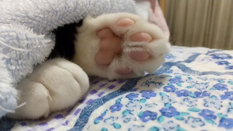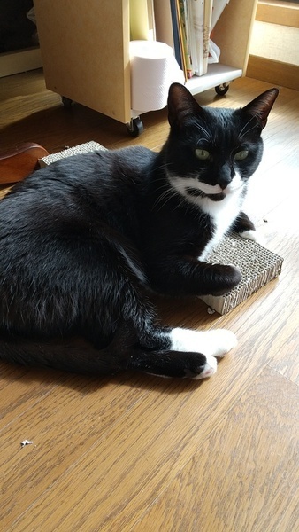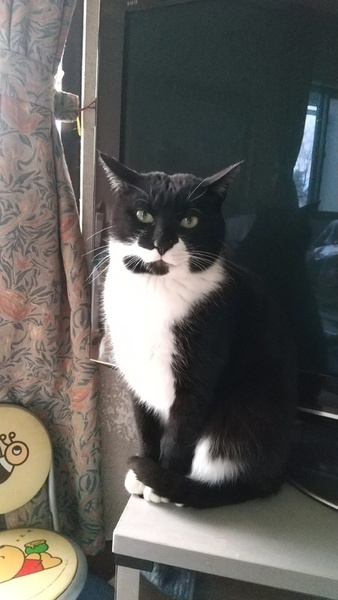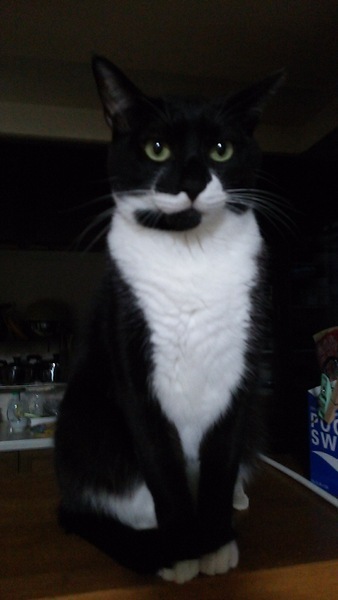 | 特徴(性格など) | 健康状態: 猫エイズが陽性です。 それ以外は健康です。 歯周炎があります。 容姿: 白黒、お鼻まで黒。 右側の口のあたりが、黒、白、黒のオレオのような配色。 まだらに白い毛が生えてる。 肉球ピンク。1肉球だけ斜めにチョコ色になっている。 性格: 本名はバットマンと言います。でも、ばっちゃんと呼んでいます。 ばっちゃんは臆病で気が弱く、ビビりん坊です。 ネコ見知り、人見知りもします。でも、なついた人には、とっても甘えん坊でカワイイです。 ぴったりと、くっついてきます。 よく返事をします。 優しくて穏やかです。 とてもよい子です。 3兄弟の中で、いつも一番最後になる、末っ子(たぶん)みたいな子です。 ドジっ子でちょっと運動オンチかも。窓枠にのるとき、ちょっとこけたりします。 キョドキョドするときもあります。でも、そこがなんとも言えない、くせになるカワイさです。 なでられるのが大好きです。 遊んだり走らせると喜びます。 |