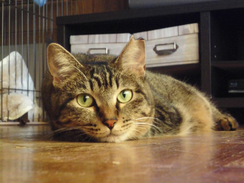 | 特徴(性格など) | 【名前】リコ 【性別】メス 【年齢】ちょうど2歳くらい 手足だけ縞模様の、ちょっと珍しいキジトラです。 女子なのにワイルドな顔付きは、ヤマネコのような気品あり(?) でも最近はデブ路線に転向したようで、マイルドヤマネコ状態... 新入り子猫になぜか好かれる姉御肌なリコねぇですが、 人馴れした猫の人気に押され、まっっったくご縁がありません(笑) シャイで臆病なので未だにモジモジコソコソしていますが、 撫でられるのが大好き♡で本当は甘えたいのに素直になれない、 そんな意地らしく、どこか共感してしまうタイプの子です。 仲良しな保護猫が次々卒業し、最近は甘え度も増していて、 撫でればゴロゴロ♡遊べば期待以上の動きで応えてくれます♪ ガタイの良さからくる重みと温かさも、この子の魅力です。 大好きなオヤツやオモチャでコミュニケーションをとりながら、 リコと里親さんだけの関係を築いていって下さい♪ ★★先住さんのいるお家を希望します★★ 猫に好かれ、猫を愛すリコ様なので、先住猫のいるお家が理想だと思っています。 保護生活が長い分、どんな子ともいつの間にか仲良くなってしまいます。 ただ最近は人馴れ度も上がっているので、1匹希望の方はご相談下さい。 【健康状態】良好 元気が取柄のガタイのいい女の子です(笑) 【体重/5月14日現在】 4.4kg 【ウィルス検査】FIV・FeLVともに陰性(証明書をお渡しします) 【ワクチン】2回接種済み(証明書をお渡しします) 【不妊手術】手術済み(耳カットあり) 適切な時期に卵巣子宮摘出術を受けました。 【検便・駆虫】検便・駆虫済み 検便の精度は5~6割と言われていて、薬の効果も100%ではありません。 念の為、里親さんのもとでの再検査をおすすめします。 【その他】 フードは好き嫌いなく何でも美味しく食べます。 トイレはシステムトイレ、爪とぎはダンボールタイプを愛用♥ 緊張で固まるタイプなので、爪切りや通院も楽ちんです。 |