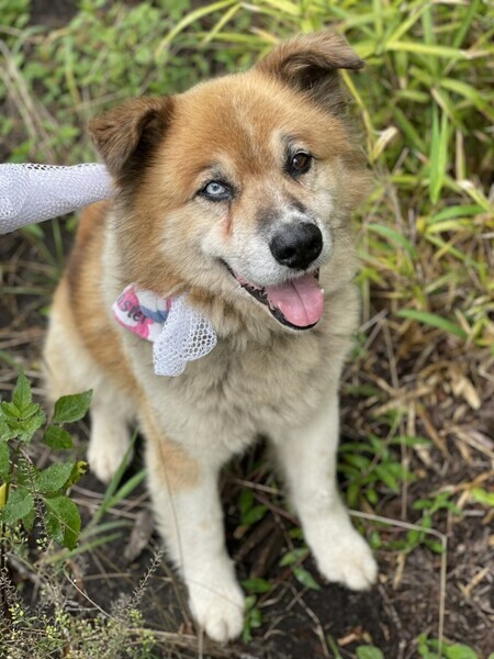 | 特徴(性格など) | 2017年から野良として確認されています。当時ノミ取り首輪と首輪をしていました。その後2021年9月の捕獲時にはノミ取り首輪だけになっていました。長い間一人で暮らしていた子です。 17キロで、大きめの中型犬です。2017年の時点で成犬サイズでした。垂れた耳とムクムクの体、クリームパンみたいな手がチャームポイントの、穏やかで優しい子です。うれしい時や不安な時、悲しい時などが分かりやすく、表情豊かです。 人間が大好きで、お家の中でも人間の近くにいます。前脚を触られるのを少し嫌がりますが、基本はどこを触っても大丈夫で、抱っこもさせてくれます。人見知りもほとんどしません。短い尻尾を振って、「頭をなでて」と近寄ってきます。 お散歩も上手にできます。お散歩の前はうれしくてはしゃぎますが、体が大きく少しどんくさいので、本人は機敏にじゃれているつもりですがそうでもないところが可愛いです。 家に慣れるまでは吠えやいたずらが見られましたが、人間の暮らしや時間サイクルにだんだんと馴染みます。今ではお留守番もちゃんとでき、日々落ち着いて暮らせています。 ケージやサークルは大嫌いで入れると吠えるため、フリー飼育を希望します。 他の犬とも基本仲良く穏やかに過ごせます。お散歩やドッグランでも、フレンドリーにしっぽ振りふりします。子犬に激しくじゃれられても怒らない子です。 ただ、攻撃性のある犬は苦手で、吠え返したり喧嘩になることがあります。 遊びたい時、ご飯が欲しい時などにすこし吠えがあります。 お風呂は問題なく行えます。 また、捕獲時からお座り、お手、おかわりができました。 車もはじめは怖がりましたが、いまはいい子で乗ることができます。 おトイレは基本外です。未去勢ですが室内マーキングはしません。 今は定期的に外に出していますが、留守が長いとひたすら我慢してしまう可能性があります。また、(お腹を壊したなどで)トイレ我慢できないような状況の時は吠えて教えてくれます。 |