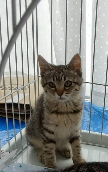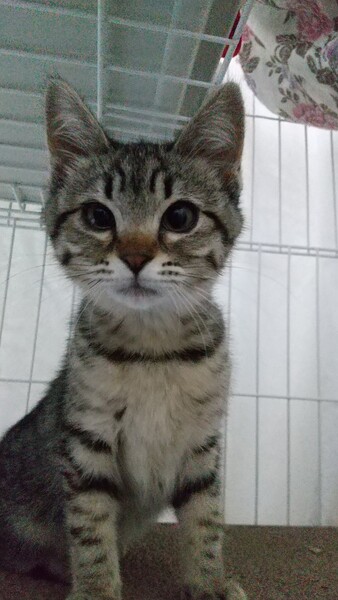 | 特徴(性格など) | キジトラで かぎしっぽです。 三姉妹で 一番のお姉さんですが ちょっと警戒心はあり 慎重です。 ですが 甘えん坊で活発です。 |