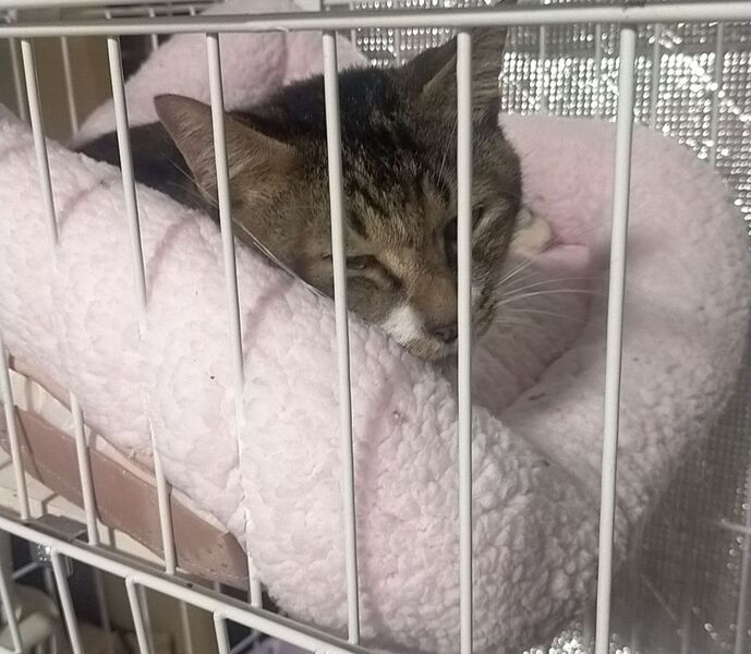 | 特徴(性格など) | キジトラ。臆病、おとなしい。その人になれるとそばに寄ってきて寝る。お腹が減ると鳴いてねだる。爪切りを嫌がらない。トイレの後のおしりふきはできる。水は嫌う。 | ||