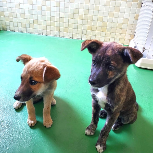 | 特徴(性格など) | ♡まだ生後3ヶ月、綺麗なブリンドルでとっても可愛い甲斐犬mix風と茶色の女の子、2匹は姉妹ですฅ•ﻌ•ฅ とても人馴れしていて愛嬌たっぷり♡ 撫で撫でも抱っこも大丈夫、尻尾フリフリ寄ってきてくれるし手からフードも食べてくれます(^^) ?栄養状態や健康状態がいいとは言い切れません。体調も急変しやすいかと思われます(>_<) 何か病気や障害が有るのか無いのかも分かりません。 今後体調の急変もあり得ることを念頭に置き、譲渡後は早急な病院受診が可能なご家庭を希望しておりますm(_ _)m 現在は1日に2回、ご寄付で送って頂いた栄養価の高い良質な仔犬用のドライフード(ネイティブドッグフードパピー)をふやかしたものを食べています。 まだ幼い為、長時間のお留守番は出来ません。寂しくて夜鳴きする子もいます。 今後の健康な成長の為に良質なフードを与える事が可能な方、育てる自信と覚悟のある方、飼育経験のある方が望ましいです♡ 子犬は排泄も頻回でこれから甘噛み期もあります、カミカミされると痛いですฅ•ﻌ•ฅ 大変ですが充分ご理解頂ける方m(_ _)m まだお散歩デビューは出来ませんが今後成長していく中で、急な物音や知らない場所にビックリして怖がって、咄嗟に逃げよう、逃げようとする可能性も大いにあり得る事だと思いますし、その時の力、引きの強さも想定し、急な走り出しや高い塀や壁・柵の飛び越え・急な方向転換や首を振って後退りからの首輪抜け、胴輪抜けにはご用心です! 呼び戻しを教えなければもし逃がしてしまったらピューっと走って行ってしまうタイプかもしれません!(>_<) もし逃がしたらもう捕まえられない!とお考えくださいm(_ _)m ※繰り返しになりますがどんな子であっても、慣れてきても常に、脱走・逃走には充分な注意と最大限の配慮をお願いしております m(_ _)m 適切に制御し、躾や朝晩のお散歩、運動の時間をしっかり取ることの出来る、沢山優しく触れ合って頂ける方、先ずはじっくりと時間を費やし触れ合い、信頼関係を作っていく事の出来るご家庭を希望しております。 ♡人間が焦らずにゆっくり見守りながら、愛情を持って接し今後しっかりとお散歩にも連れ出して行けば、この子達ならじきに新しい家庭に馴染んでいける、本当は優しい家族に囲まれて思い切り甘えて遊んでほしいのだと思います。 当分の間はかなり手がかかり大変かと思いますがまだ子犬ですし、広い心で、ドンとこい^_^と仰って頂ける方、 愛くるしいこの子達をこの先ずっと尻尾フリフリ♫ニコニコの笑顔にしてくださる方、いらっしゃいませんか? どうぞ宜しくお願い申し上げますm(_ _)m ⭐️必ず室内飼育で、譲渡後速やかに病院受診、健康診断、混合ワクチン、生後4〜6ヶ月頃を目処に避妊手術をする事が可能なご家庭。 ⭐️まだ幼い為長時間のお留守番は出来ません。なるべくお留守番の少ない、沢山優しくスキンシップやコミュニケーションで触れ合っていただけるご家庭。 ストレスが溜まらぬよう成長後の運動量もしっかり確保出来るご家庭m(_ _)m ⭐️トイレの躾は1からとなります。まだ子犬なので躾は入りやすいと思われます。現在ペットシートでトイレの練習中(^^) 最初は何かと手がかかり大変ですが(トイレスペースやペットシート、新聞紙を用意など)覚悟と根気・理解で受け入れて下さる方m(_ _)m ⭐️出来れば中型〜大型犬の飼育経験があり自信のある方、愛情を持って犬をしっかり躾することが出来る方、毎日朝晩のお散歩や運動にも充分時間をあてられる方、もし怖がってなかなかお散歩が出来ない時などには決して引きこもりにならぬよう、場合によりトレーニング教室などもきちんと視野に入れて考えてくださる方。 何卒宜しくお願い致しますm(_ _)m ⭐️成犬時にどの位の大きさになるか分かりません、大きくなっても、(今のところ吠えませんが)吠えても大丈夫なご家庭。 中型〜大きめの中型犬程度に成長すると思われますฅ•ﻌ•ฅ もしかしたらもっと大きくなる可能性もあります。 以上の点を踏まえ、この子達が置かれている状況、寂しさと不安でいっぱいであろう心をご理解の上、全て受け入れ寄り添っていただけるご家庭で可愛がって頂きたいと祈っております。 収容された全ての子達は身勝手な人間による被害者であり、何も悪くありません( ; ; ) 家族の一員として生涯大切にしてくださる優しいご家庭とのご縁が結ばれ、これからは幸せになれます様に♡ ☆⭐︎ 1日も早く温かな愛情を目一杯注がれながら、元気に幸せに生きてほしいです。人間より遙かに短い生涯です。 冷たく硬いコンクリートの上、狭い檻の中でひたすら優しい素敵な里親様を待ち続けています。 悲しい事にこの世の中、人間に飼われないと犬は生きていく事が出来ません。 捨てる飼い主、探さない飼い主、医療にかけない飼い主、虐待する飼い主…飼い主を選ぶ事も出来ません。 生まれたばかりのこれからのこの子達を、生涯大切に可愛がって下