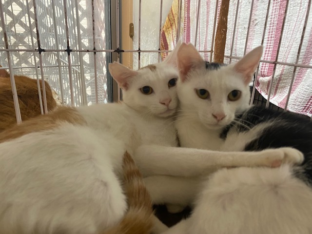 | 特徴(性格など) | 白に茶色の模様の子がそらくんで、白に黒の模様の子がうみくんで仲良しの兄弟です。二匹とも少し臆病なところはありますが、元気で仲良く遊んでいます。 | ||