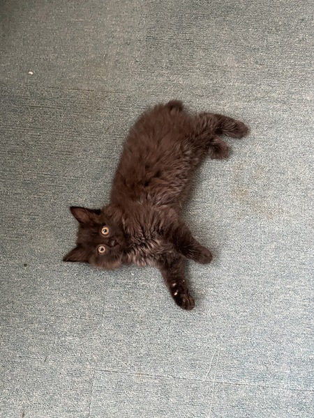 | 特徴(性格など) | 掲載終了しましたが、成立しませんでしたので再度募集します。 【黒猫】 見た目は子熊みたいです。 真っ黒ではありません。日光が当たると茶色に見えます。白い毛も混ざってます。 尻尾が特徴的でクルンとしてます。若干長毛です。 初めはビビりでなかなか出てきませんでしたが、1週間もしたら慣れたようで目の前でよく遊んでます。 5/28時点 病院に行きましたが、体重(600g)から生後2ヶ月は経ってないとのことでした。 健康上は特に問題ないそうです。 6/11時点 ご飯よく食べ、活発に遊んでます。 人にも慣れてきました。 測っていませんが、体格も大きくなり1kg近くあるかもしれません。 6/12 体重970gでした。 |