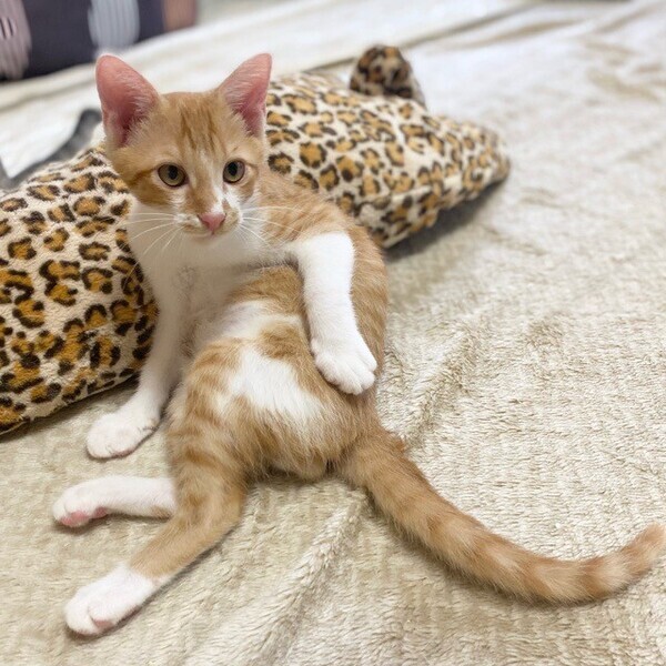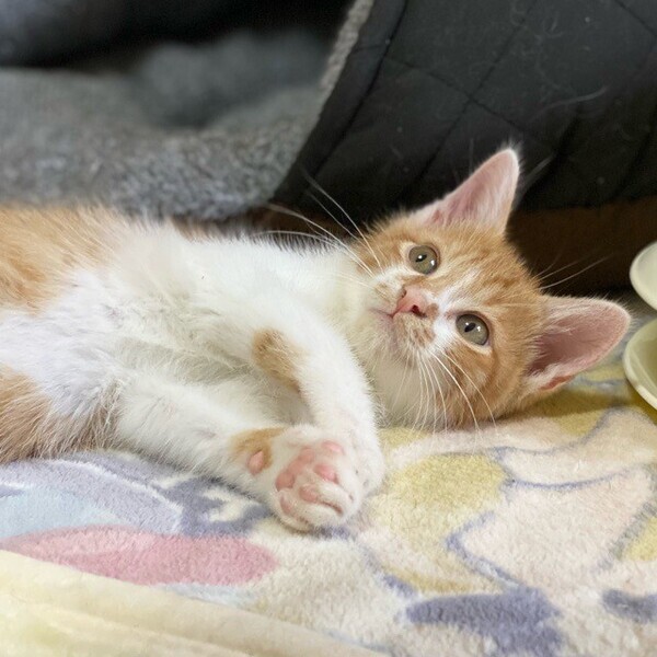 | 特徴(性格など) | ちょっぴりビビりな「ゴッホ」くん❤ お友だちと遊びたいけど、ちょっぴり怖い⁈ ナデナデ抱っこして貰いたいけど、ちょっぴり怖い⁈ 少し落ち着いてナデナデしてあげると、うっとり♪ ちょっぴりシャイな甘えん坊♪ 現在、ドライフードを24時間の置き餌として栄養補給、水分補給のため一日2回パウチを与えています。 <推定誕生日:2022年3月始め> |