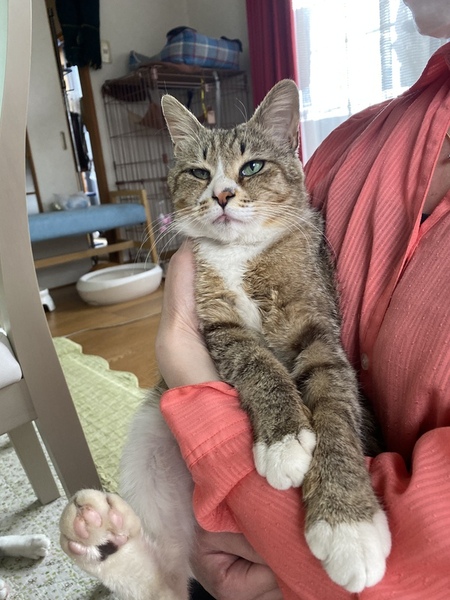 | 特徴(性格など) | 保護したときから人馴れしており、威嚇もしません。人間も猫も大好き! お布団にも入ってきてくれる♡ おちょぼ口も可愛い♡ |