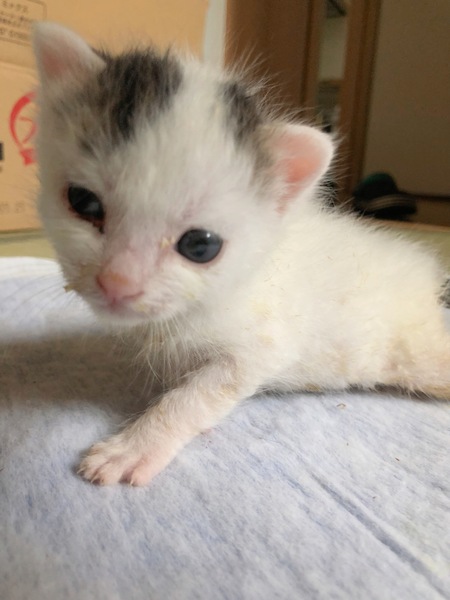 | 特徴(性格など) | 白黒ブチ模様が可愛い忠信くんです 生まれてすぐに保護したからか 甘えん坊で寝ていても人の気配を察知して ハイハイ歩きしながら寄ってきます |