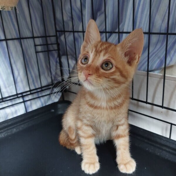 | 特徴(性格など) | ◆ちゃ助くん 警戒しながらも人慣れ中の茶トラ男子 ●月齢の小さな子猫は、以下の条件についてご了承の上で応募をご検討下さい。 ◆お留守番の少ないご家族、 ◆横浜市青葉区内もしくは近郊にお住いのご家族、を希望します。 ◆2匹でお迎えくださるご家族を優先いたします。 ◆小さなお子様のいるご家庭は状況によりお断りする場合がございます。 ◆高齢者のみのご家族からの子猫のお申し込みはお受けしていません。 〇横浜市内で保護されました。 〇生後3か月半ぐらい(2022年7月上旬時点)、体重1.08kg (2022年6月下旬時点)の茶トラの男の子です。 〇尻尾は長くて真っ直ぐです。 〇同じく里親募集中の「ちゃとる」「キジ助」とは兄弟です。 〇兄弟の中では一番ビビりで最初は兄弟の後ろに隠れていましたが、最近は伸び伸びと過ごしています。 〇食いしん坊で、美味しいご飯を出すと真っ先に食べに来ます。 〇まだ人に対して少し警戒心はありますが、警戒しながらもグルグルと喉を鳴らしているので、慣れれば人懐こい子になると思います。 〇遊ぶのも大好きで、兄弟とも激しくにゃんこプロレスをしながら日々遊んでいます。 〇元気にすくすく育っています。 ☆ワクチン1回済み。 ☆ 猫エイズ、猫白血病ともに陰性。 ☆不妊手術は成長と体調を見て実施予定です。 ◯YouTubeにも動画をあげています。こちらもご覧下さい。 「ちゃ助」 https://youtube.com/shorts/tsJuuBFh4Uk 「ちゃ助」その2 https://youtu.be/Md51jzBby9k ○7/10(日)開催の譲渡会に参加予定! 下の要項をお読みいただき、ぜひ会いに来てください♪ ☆★☆★☆★☆★☆★☆★☆★☆★☆★☆★☆ ~7月10日(日)新山下にて譲渡会開催!~ ◎場所・・「島忠ホームズ 新山下店」 神奈川県横浜市中区新山下2丁目12−34 JR根岸線「桜木町駅」より横浜市営バス(8.26.58.148系統)乗車「貯木場前」より徒歩約5分 みなとみらい線「元町・中華街駅」より徒歩約15分 ◎日程・・7月10日(日)(雨天決行) ◎時間・・12時から15時 【14時30分受付終了】 (会場に利用可能な無料駐車場がございます。そちらをご利用くださいませ。) 今回はコロナ対策のため、制限を設けての開催となります。 *3密対策のため、当日10時より全時間分の整理券を配布いたします。整理券枚数には限りがございますので、上限に達した場合はご入場できません。 *各回15分 *各回先着3組様 *参加の際は、マスクの着用、アルコール消毒のご協力をお願いいたします。 *当日は検温の上、体温が37度以上の方はご参加いただけません。 *混雑状況により、中止させていただく場合がございます。 ※参加予定の犬猫は体調により参加できない場合があります。ご了承ください。 ☆★☆★☆★☆★☆★☆★☆★☆★☆★☆★☆ |