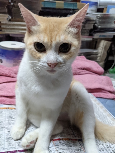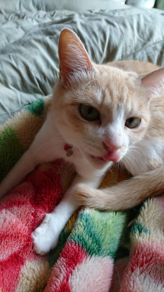 | 特徴(性格など) | 名前はタマゴ 色は茶色と白色です。生後1週間ぐらいの頃に、川の近くで捨てられていた保護猫です。 性格は少し人見知りですが、とても甘えん坊です。 感受性豊かな子で、よく会話を聞いてくれて、妹猫ちゃんの面倒もみてくれる優しい子です。 人間の布団で一緒に寝るのが大好きで、食べ物も好き嫌いせずなんでも食べてくれます。 |