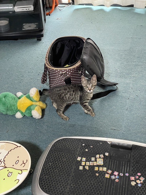 | 里親募集する理由 | 勤めている会社の敷地内で保護しました。 前日から鳴き声は聞こえていましたが、姿が見えず、翌日になって倉庫の間に隠れているのを見つけました。 暑い日が続いていたので、このままでは死んでしまう可能性があり保護しました。 |