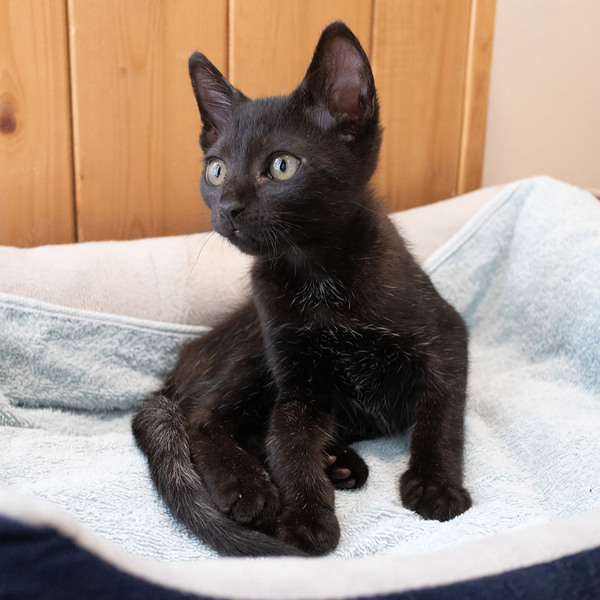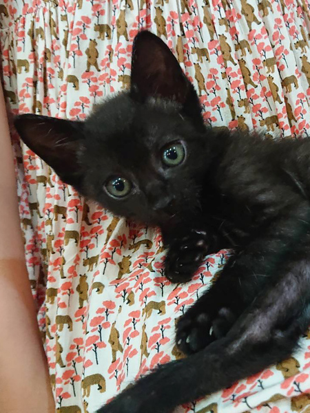 | 特徴(性格など) | かわいい黒猫の男の子です。 授乳で育てたので、とても人懐っこいです♪ しっぽが長くて真っすぐ♪ エイズ白血病陰性 ワクチン済み・駆虫済み・マイクロチップ挿入済みです。 |