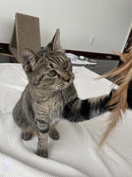 | 特徴(性格など) | ◆あんず飴ちゃん おっとり優しいキジトラの女の子 ○福島県内にて飼育放棄されたため保護されました。 ○2歳(2020年10月生まれ)のキジトラの女の子です。体重は3.6kg(2022年11月21日時点)。 ○尻尾は長いです。 ○一見臆病ですが人間が好きで、慣れればスリゴロです。 ○おっとりしていてとても優しい性格です。 ○ブラッシング大好き、遊ぶの大好きです。 ★ワクチン1回接種済、不妊手術済み。 ★猫エイズ、猫白血病ともに陰性。 ☆単身のかたはご相談ください。 ○YouTubeにも動画を上げています。こちらもご覧下さい。 「あんず飴」 https://youtu.be/fwyNQ5xdVLE 「あんず飴」その2 https://youtu.be/8xY0LEgBAV0 ○3/26(日)開催の譲渡会に参加予定!下の要項をお読みいただき、ぜひ会いに来てください♪ ☆★☆★☆★☆★☆★☆★☆★☆★☆★☆★☆★☆★☆★☆★☆★☆★☆★☆★☆ 3月26日(日)荏田にて譲渡会開催! ◎場所・・「島忠 荏田店」 神奈川県横浜市青葉区荏田西1ー3ー14 田園都市線「江田」駅より徒歩約7分 246号線江田駅交差点そば ◎日程・・3月26日(日)(雨天決行) ◎時間・・13時から16時 【15時30分受付終了】 (会場に利用可能な無料駐車場がございます。そちらをご利用くださいませ。) 今回はコロナ対策のため、制限を設けての開催となります。 *3密対策のため、当日12時30分より整理券を配布いたします。 *各回15分 *各回先着3組様 *参加の際は、マスクの着用、アルコール消毒のご協力をお願いいたします。 *当日は検温の上、体温が37度以上の方はご参加いただけません。 *混雑状況により、中止させていただく場合がございます。 ※参加予定の犬猫は体調により参加できない場合があります。ご了承ください。 ☆★☆★☆★☆★☆★☆★☆★☆★☆★☆★☆★☆★☆★☆★☆★☆★☆★☆★☆ |