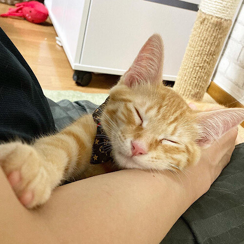 | 特徴(性格など) | りくくんは日々甘えん坊を更新しております! 最近では「おいで!」と言いながらポンポンすると尻尾をピン!とさせて膝の上に乗ってくれたり。こんなに可愛い顔で見つめられたらたまりません♡ 撫でてる時にスッと離れると「まだ終わってないでしょ!」と言いたげにゴロゴロ鳴らしながら擦り寄ってきます。 さらに夜はたまにベッドまで来てスリスリゴロゴロ……ポジションを決めてるうちに顔の上で寝る事も笑 兄妹の中で1番体の大きいりくくんは甘えん坊率も1番です! 生まれてからずっと一緒にいるゆずくんと一緒に引き取っていただきたいです。 |