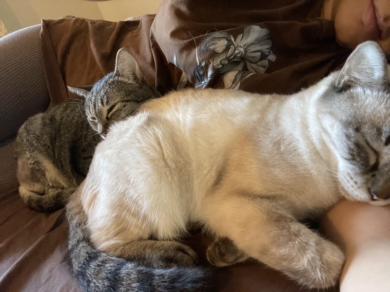 | 特徴(性格など) | アメショ灰色(デイジー): 人懐っこい、わんぱく、甘え上手、寂しがり屋、人見知りしない、トイレはちゃんとする子、食欲少なめ、ウェットフード好き ラグドール白(リリー): 女の子らしさある、人見知り、仲良くなったら甘える、食欲旺盛、綺麗好き、人が来ると隠れる、ご飯の時凄い声出す笑 |