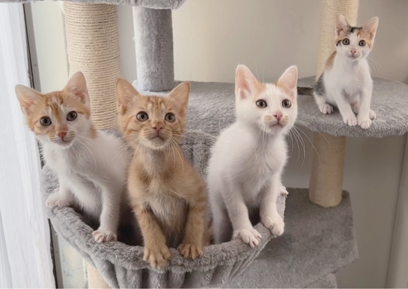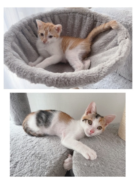 | 特徴(性格など) | 5月8日生まれ 【はちみつ】茶トラ・男の子→里親決定☆ 【みかん】三毛・女の子→里親決定☆ 【みるく】顔白め茶白・男の子 人が大好き。 ゴロゴロ喉を鳴らして寄ってきます。 【きなこ】茶白・男の子 マイペースでフレンドリー。 遊ぶの大好きで、しっかりものです。 |