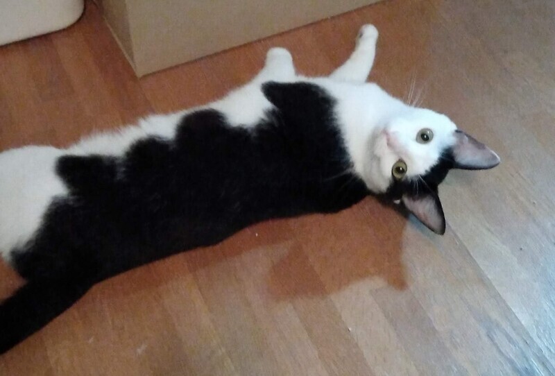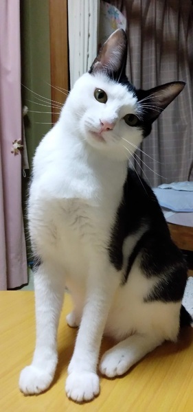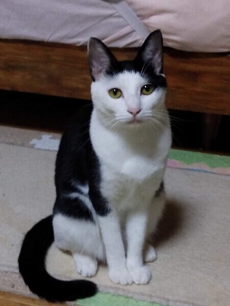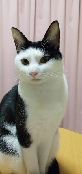 | 特徴(性格など) | 前髪を斜めにカットしたような柄がかわいいです。 白黒柄の女の子で、しっぽはまっすぐで長いです。 遊んでもらうのが大好きで甘えにきてくれます。 |