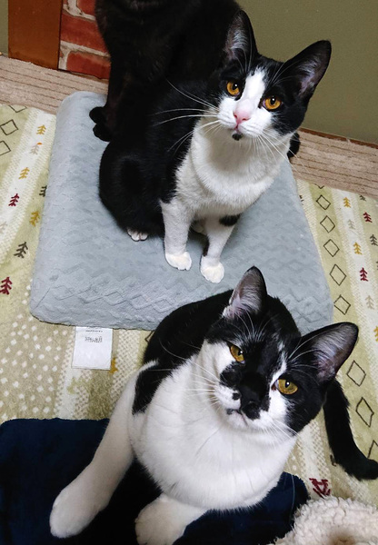 | 里親募集する理由 | 保健所から引き取り、新しい飼い主さんを探す活動をしています。 黒白(メス)とキジ白(オス)の兄妹がいます。 |