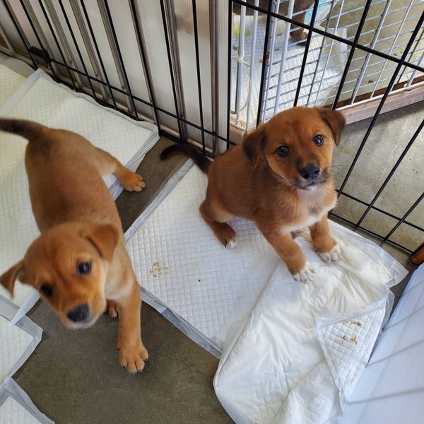 | 特徴(性格など) | ♡まだよちよち歩きの生後2か月弱位、とっても可愛い雑種の子犬、男の子がひとりぼっちで待っていますฅ•ﻌ•ฅ 優しい職員さん方が大丈夫だよ、幸せになれます様にと毎日触れ合い、声掛けしながら一生懸命にお世話してくださっています。 だいぶ人馴れしてきて撫で撫でも抱っこも大丈夫、尻尾フリフリ寄ってきてくれるようになりました(^^) 子犬らしく愛嬌たっぷり♪ ★今迄の環境や栄養状態、健康状態がいいとは言い切れません。 何か病気や障害が有るのか無いのかも分かりません。 今後体調の急変もあり得ることを念頭に置き 譲渡後は早急な病院受診が可能なご家庭を希望しておりますm(_ _)m 現在は1日に2回、ご寄付で送って頂いた栄養価の高い良質な仔犬用のドライフード(ネイティブドッグフードパピー)をふやかしたものを食べています。 まだまだ幼い為、長時間のお留守番は出来ません。寂しくて夜鳴きする子もいます。 今後の健康な成長の為に良質なフードを与える事が可能な方、育てる自信と覚悟のある方、飼育経験のある方が望ましいです♡ 子犬は排泄も頻回でこれから甘噛み期もあります、カミカミされると痛いですฅ•ﻌ•ฅ 換毛期は抜け毛も沢山、日々のブラッシングもあります。大変ですが充分ご理解頂ける方m(_ _)m まだお散歩デビューは出来ませんが今後成長していく中で、急な物音や知らない場所にビックリして怖がって、咄嗟に逃げよう、逃げようとする可能性も大いにあり得る事だと思いますし、その時の力、引きの強さも想定し、急な走り出しや高い塀や壁・柵の飛び越え・急な方向転換や首を振って後退りからの首輪抜け、胴輪抜けにはご用心です! 呼び戻しを教えなければもし逃がしてしまったらピューっと走って行ってしまうタイプかもしれません!(>_<)もし逃がしたらもう捕まえられない!とお考えくださいm(_ _)m ※繰り返しになりますがどんな子であっても、慣れてきても常に、脱走・逃走には充分な注意と最大限の配慮をお願いしております m(_ _)m 適切に制御し、躾や朝晩のお散歩、運動の時間をしっかり取ることの出来る、沢山優しく触れ合って頂ける方、先ずはじっくりと時間を費やし触れ合い、信頼関係を作っていく事の出来るご家庭を希望しております。 ♡人間が焦らずにゆっくり見守りながら、愛情を持って接し今後しっかりとお散歩にも連れ出して行けば、この子ならきっとすんなり新しい家庭に馴染んでいける、本当は優しい家族に囲まれて思い切り甘えて遊んでほしいのだと思います。 当分の間はかなり手がかかり大変かと思いますがまだ子犬ですし、広い心で、長期戦でもドンとこい^_^と仰って頂ける方、 愛くるしいこの子達をこの先も尻尾フリフリ♫ニコニコの笑顔にしてくださる方、いらっしゃいませんか? どうぞ宜しくお願い申し上げますm(_ _)m ⭐️必ず室内飼育で、譲渡後速やかに病院受診、健康診断、混合ワクチン、生後4〜6ヶ月頃を目処に去勢・避妊手術をする事が可能なご家庭。 ⭐️まだまだ幼い為長時間のお留守番は出来ません。なるべくお留守番の少ない、沢山優しくスキンシップやコミュニケーションで触れ合っていただけるご家庭。 ストレスが溜まらぬよう成長後の運動量もしっかり確保出来るご家庭m(_ _)m ⭐️トイレの躾は1からとなります。まだ子犬なので躾は入りやすいと思われます。現在ペットシートでトイレの練習中(^^) 最初は何かと手がかかり大変ですが(トイレスペースやペットシート、新聞紙を用意など)覚悟と根気・理解で受け入れて下さる方m(_ _)m ⭐️出来れば中型〜大型犬の飼育経験があり自信のある方、叩いたりせず愛情を持って犬をしっかり躾することが出来る方、毎日朝晩のお散歩や運動にも充分時間をあてられる方、もし怖がってなかなかお散歩が出来ない時などには決して引きこもりにならぬよう、場合によりトレーニング教室などもきちんと視野に入れて考えてくださる方。 何卒宜しくお願い致しますm(_ _)m ⭐️成犬時にどの位の大きさになるか分かりません、大きくなっても、(今のところ吠えませんが)吠えても大丈夫なご家庭。 中型〜大きめの中型犬程度に成長すると思われますฅ•ﻌ•ฅ もしかしたらもっと大きくなる可能性もあります。 以上の点を踏まえ、この子達が置かれている状況、寂しさと不安でいっぱいであろう心をご理解の上、全て受け入れ寄り添っていただけるご家庭で可愛がって頂きたいと祈っております。 収容された全ての子達は身勝手な人間による被害者であり、何も悪くありません( ; ; ) 家族の一員として生涯大切にしてくださる優しいご家庭とのご縁が結ばれ、これからは幸せになれます様に♡ ☆⭐︎ 1日も早く温かな愛情を目一杯注がれながら、元気に幸せに生きてほしいです。人間より遙かに短い生涯です。 冷たく硬いコンクリートの上、狭い檻の中でひたすら優しい素敵な里親様を待ち続けています。 悲しい事にこの世の中、人間に飼われないと犬