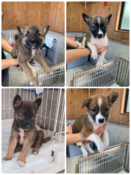 | 特徴(性格など) | ♡まだよちよち歩きの生後1か月ちょっと位、とっても可愛い雑種の子犬兄弟(男の子4匹)が本当の家族を待っていますฅ•ﻌ•ฅ 優しい職員さん方が大丈夫だよ、幸せになれます様にと毎日触れ合い、声掛けしながら一生懸命にお世話してくださっています。 だいぶ人馴れしてきて撫で撫でも抱っこも大丈夫、尻尾フリフリ甘えてくれるようになりました(^^) 子犬らしさ全開にきょうだい同士じゃれ合いながら遊んだり愛嬌たっぷり♪ ? 栄養不良に不衛生な環境からの保護・収容で、ノミダニがついていましたし痩せていました( ; ; )栄養状態や健康状態がいいとは言い切れません。体調も急変しやすいかと思われます(>_<) もしかしたら何か病気や障害が有るのか無いのかも分かりません。 今後体調の急変もあり得ることを念頭に置き、譲渡後は早急な病院受診が可能なご家庭を希望しておりますm(_ _)m 現在は1日に2回、ご寄付で送って頂いた栄養価の高い良質な仔犬用のドライフード(ネイティブドッグフードパピー)をミルクでふやかしたものを食べています。 まだまだ幼い為、長時間のお留守番は出来ません。寂しくて夜鳴きする子もいます。 今後の健康な成長の為に良質なフードを与える事が可能な方、育てる自信と覚悟のある方、飼育経験のある方が望ましいです♡ 子犬は排泄も頻回でこれから甘噛み期もあります、カミカミされると痛いですฅ•ﻌ•ฅ 換毛期は抜け毛も沢山、日々のブラッシングもあります。大変ですが充分ご理解頂ける方m(_ _)m まだしばらくお散歩デビューは出来ませんが今後成長していく中で、急な物音や知らない場所にビックリして怖がって、咄嗟に逃げよう、逃げようとする可能性も大いにあり得る事だと思いますし、その時の力、引きの強さも想定し、急な走り出しや高い塀や壁・柵の飛び越え・急な方向転換や首を振って後退りからの首輪抜け、胴輪抜けにはご用心です! 呼び戻しを教えなければもし逃がしてしまったらピューっと走って行ってしまうタイプかもしれません!(>_<)もし逃がしたらもう捕まえられない!とお考えくださいm(_ _)m ※繰り返しになりますがどんな子であっても、慣れてきても常に、脱走・逃走には充分な注意と最大限の配慮をお願いしております m(_ _)m 適切に制御し、躾や朝晩のお散歩、運動の時間をしっかり取ることの出来る、沢山優しく触れ合って頂ける方、先ずはじっくりと時間を費やし触れ合い、信頼関係を作っていく事の出来るご家庭を希望しております。 ♡人間が焦らずにゆっくり見守りながら、愛情を持って接し今後しっかりとお散歩にも連れ出して行けば、この子達ならきっとすんなり新しい家庭に馴染んでいける、本当は優しい家族に囲まれて思い切り甘えて遊んでほしいのだと思います。 当分の間はかなり手がかかり大変かと思いますがまだ子犬ですし、広い心で、長期戦でもドンとこい^_^と仰って頂ける方、 愛くるしいこの子達をこの先も尻尾フリフリ♫ニコニコの笑顔にしてくださる方、いらっしゃいませんか? どうぞ宜しくお願い申し上げますm(_ _)m ⭐️必ず室内飼育で、譲渡後速やかに病院受診、健康診断、混合ワクチン、生後4〜6ヶ月頃を目処に去勢・避妊手術をする事が可能なご家庭。 ⭐️まだまだ幼い為長時間のお留守番は出来ません。なるべくお留守番の少ない、沢山優しくスキンシップやコミュニケーションで触れ合っていただけるご家庭。 ストレスが溜まらぬよう成長後の運動量もしっかり確保出来るご家庭m(_ _)m ⭐️トイレの躾は1からとなります。まだ子犬なので躾は入りやすいと思われます。現在ペットシートでトイレの練習中(^^) 最初は何かと手がかかり大変ですが(トイレスペースやペットシート、L字型トイレ、新聞紙を用意など)覚悟と根気・理解で受け入れて下さる方m(_ _)m ⭐️出来れば中型〜大型犬の飼育経験があり自信のある方、 叩いたりせず愛情を持って犬をしっかり躾することが出来る方、毎日朝晩のお散歩や運動にも充分時間をあてられる方、もし怖がってなかなかお散歩が出来ない時などには決して引きこもりにならぬよう、場合によりトレーニング教室などもきちんと視野に入れて考えてくださる方。 何卒宜しくお願い致しますm(_ _)m ⭐️成犬時にどの位の大きさになるか分かりません、大きくなっても、(今のところ吠えませんが)吠えても大丈夫なご家庭。 中型〜大きめの中型犬程度に成長すると思われますฅ•ﻌ•ฅ もしかしたらもっと大きくなる可能性もあります。 以上の点を踏まえ、この子達が置かれている状況、寂しさと不安でいっぱいであろう心をご理解の上、全て受け入れ寄り添っていただけるご家庭で可愛がって頂きたいと祈っております。 収容された全ての子達は身勝手な人間による被害者であり、何も悪くありません( ; ; ) 家族の一員として生涯大切にしてくださる優しいご家庭とのご縁が結ばれ、これからは幸せになれます様に♡ ☆⭐︎ 1日も早く温かな愛情を目