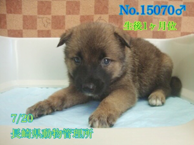 | 里親募集する理由 | ♡まだよちよち歩きの生後1か月ちょっと位、とっても可愛い雑種の子犬5きょうだいですฅ•ﻌ•ฅ (男の子4匹、女の子1匹) 野良ちゃんが生んだようで、長崎県島原市有明町内の山中にて7/20に保護され保健所収容、現在は長崎県動物管理所へ移送されてきています。 突然親犬と離れ離れになり連れて来られてどんなに寂しく心細いか。 一日も早く温かい家庭の中で過ごさせてあげたいです。 ⭐️県外、遠方の方でも譲渡の条件が合い、良縁に恵まれましたら里親になっていただけますのでどうぞ宜しくお願い致します! ※※※長くなりますが犬猫と里親様の幸せの為にも、募集内容を熟読し、必ずご家族とよく相談をされた上、ご家族全員の賛同を得られてからのお問い合わせ をお願い申し上げます※※※ ⭐️ 外飼いでは無く、室内飼育で家族の一員として迎えて下さる方、「引き渡し方法」のところにあります【アンケート】にご回答とどの子をご希望か、と共に、お問い合わせを頂けますよう、お願い申し上げますm(_ _)m 優しい職員さん方が大丈夫だよ、幸せになれます様にと毎日触れ合い、声掛けしながら一生懸命にお世話してくださっています。 だいぶ人馴れしてきて撫で撫でも抱っこも大丈夫、尻尾フリフリ甘えてくれるようになりました(^^) 子犬らしくきょうだい同士じゃれ合って愛嬌たっぷり♪ ? 栄養不良に不衛生な環境からの保護・収容で、ノミダニがついていましたし痩せていました( ; ; )栄養状態や健康状態がいいとは言い切れません。体調も急変しやすいかと思われます(>_<) もしかしたら何か病気や障害が有るのか無いのかも分かりません。 今後体調の急変もあり得ることを念頭に置き、譲渡後は早急な病院受診が可能なご家庭を希望しておりますm(_ _)m 現在は1日に2回、ご寄付で送って頂いた栄養価の高い良質な仔犬用のドライフード(ネイティブドッグフードパピー)をミルクでふやかしたものを食べています。 まだまだ幼い為、長時間のお留守番は出来ません。寂しくて夜鳴きする子もいます。 今後の健康な成長の為に良質なフードを与える事が可能な方、育てる自信と覚悟のある方、飼育経験のある方が望ましいです♡ ※子犬は思っていた以上にお世話が大変だと言われる方が多く、排泄も頻回でこれから甘噛み期もありますฅ•ﻌ•ฅ まだしばらくお散歩デビューは出来ませんが今後成長していく中で、急な物音や知らない場所にビックリして怖がって、咄嗟に逃げよう、逃げようとする可能性も大いにあり得る事だと思いますし、その時の力、引きの強さも想定し、急な走り出しや高い塀や壁・柵の飛び越え・急な方向転換や首を振って後退りからの首輪抜け、胴輪抜けにはご用心です! 呼び戻しを教えなければもし逃がしてしまったらピューっと走って行ってしまうタイプかもしれません!(>_<) もし逃がしたらもう捕まえられない!とお考えくださいm(_ _)m ※繰り返しになりますがどんな子であっても、慣れてきても常に、脱走・逃走には充分な注意と最大限の配慮をお願いしております m(_ _)m 適切に制御し、躾や朝晩のお散歩、運動の時間をしっかり取ることの出来る、沢山優しく触れ合って頂ける方、先ずはじっくりと時間を費やし触れ合い、信頼関係を作っていく事の出来るご家庭を希望しております。 ♡人間が焦らずにゆっくり見守りながら、愛情を持って接ししっかりとお散歩にも連れ出して行けば、この子達ならきっとすんなり新しい家庭に馴染んでいける、優しい家族に囲まれて思い切り甘えて遊んでほしいのだと思います。 当分の間はかなり手がかかり大変かと思いますがまだ子犬ですし、広い心でドンとこい^_^と仰って頂ける方、愛くるしいこの子達をこの先も尻尾フリフリ♫ニコニコの笑顔にしてくださる方、いらっしゃいませんか? どうぞ宜しくお願い申し上げますm(_ _)m ⭐️必ず室内飼育で、譲渡後速やかに病院受診、健康診断、2回目混合ワクチン、生後4〜6ヶ月頃を目処に去勢、避妊手術をする事が可能なご家庭。 ⭐️まだまだ幼い為長時間のお留守番は出来ません。 なるべくお留守番の少ない(4時間以内) 沢山優しくスキンシップやコミュニケーションで触れ合っていただけるご家庭。 ストレスが溜まらぬよう成長後の運動量もしっかり確保出来るご家庭m(_ _)m ⭐️トイレの躾は1からとなります。まだ子犬なので躾は入りやすいと思われます。現在ペットシートでトイレの練習中(^^) 最初は何かと手がかかり大変ですが(広めのトイレスペースや、ペットシート、L字型トイレ、新聞紙を用意など)覚悟と根気・理解で受け入れて下さる方m(_ _)m ⭐️出来れば中型〜大型犬の飼育経験があり自信のある方、愛情を持って犬をしっかり躾することが出来る方、毎日朝晩のお散歩や運動にも充分時間をあてられる方、もし怖がってなかなかお散歩が出来ない時などにはずっと家の中に引きこもりにならぬよう、場合によりトレーナーさんをお願いしてきちんと向き合