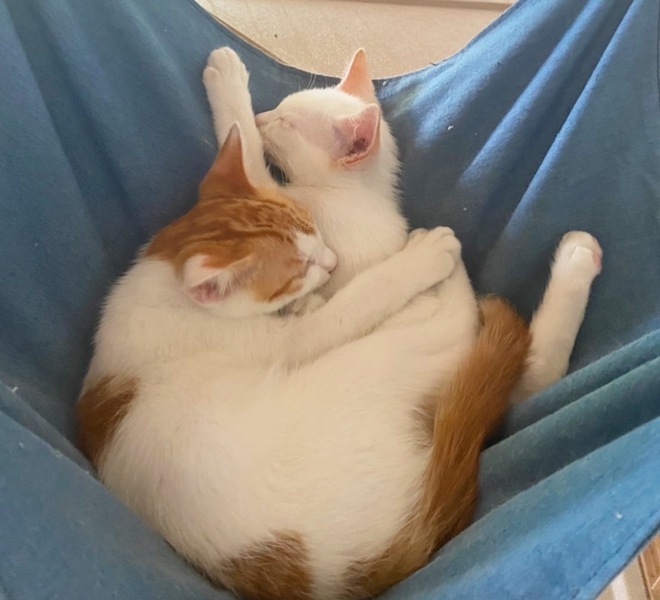 | 特徴(性格など) | 白薄茶(幸くん)&茶トラ白(福くん) 2匹ともやんちゃ盛り、可愛い盛り♪ よく食べ、よく遊び、よく寝て元気よく成長しています!ゴロゴロ喉をよく鳴らしてます。 |