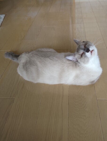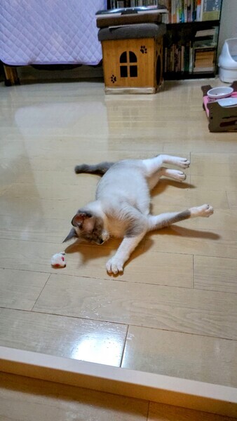 | 特徴(性格など) | シャムで、アイボリー地にグレーベージュのぼかし柄の毛並です。 この子は生まれつき眼球が無く、目が見えません。耳もあまり聞こえていないようなのでヘレンと名付けました。 ハンデがあっても、トイレをきちんと自分ででき、またご飯の場所もちゃんと分かります。保護して2ヶ月になりますが、環境に素晴らしく適応してくれて、家中を壁や物にぶつからずに自由に歩き回ることができるようになりました。 他の猫たちが居ても問題なく、本当に大人しくてお利口さんな子です。 何か欲しいものがある時は、必ず台所に座り、こちらを見上げていて、その姿がとても愛らしいです。 気が向くと、ネズミのおもちゃで遊んでいます。 |
