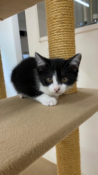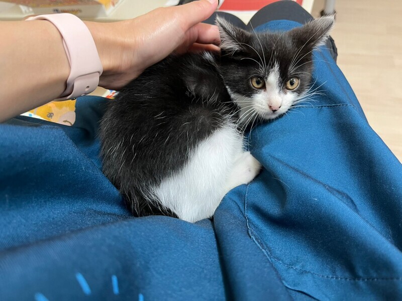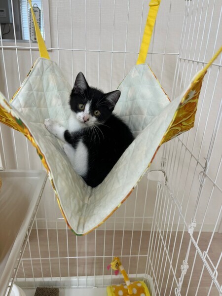 | 特徴(性格など) | ●白&黒 ●ママは「トゥ」推定年齢1~2才、子猫は「ギャザー」でオス、推定年齢2か月です。 ●性格その他:保護当初は警戒心が強くシャーシャーしていましたが、撫でさせてくれるようになりました。親子一緒にもらってくれるお家を希望しています。 |