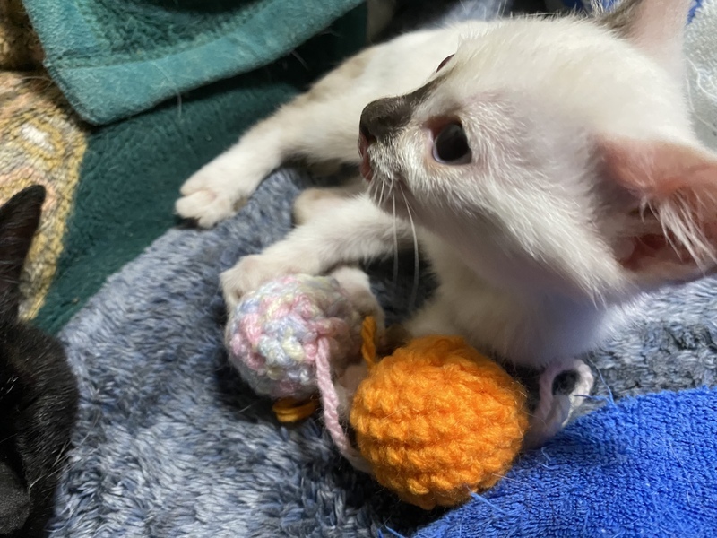 | 特徴(性格など) | 他の子に比べとても小柄です。 少し特徴的な模様をしています。 お目目は綺麗な青い目をしており、お顔にある模様がとてもチャーミングです。 性格はやや臆病なとこがありますが、撫でられるとトロトロにとろけます。 いつも他の猫と一緒に寝ており、猫との相性は良さそうです。 |