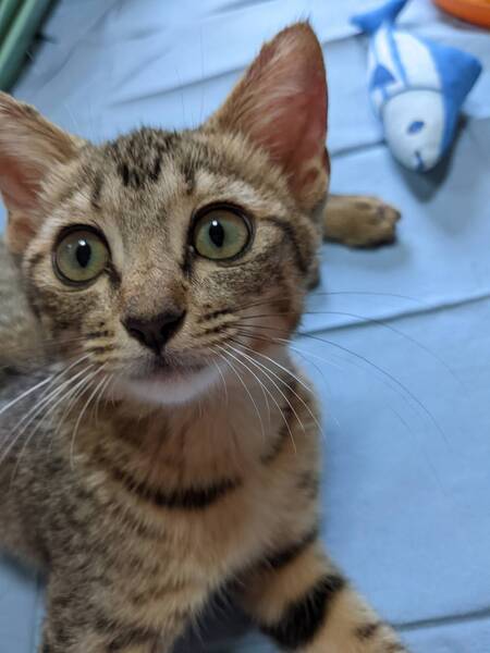 | 特徴(性格など) | とても綺麗なキジ猫ちゃんです。 目とお耳が大きく鼻筋のスッとした美猫ちゃんです。 性格は、甘えん坊で遊ぶのも大好きで、性格も穏やかでかいやすいのではないかと思います。 |