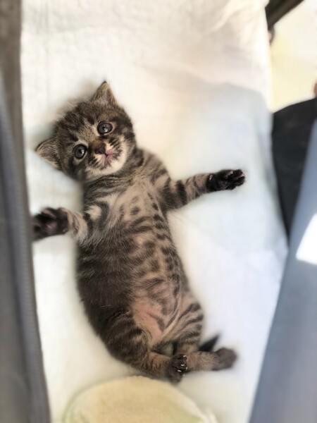 | 特徴(性格など) | 捨てられていて保護しました。120gの生まれたばかりの状態から、当方の預かりボランティアがミルクから育てました。ここまでよく育ちました。とても幸運の女の子です! ご飯もよく食べ元気にしています(^^) ・ノミダニ回虫駆除済み ・エイズ(−)白血病(−) ・3種混合ワクチン接種済 |