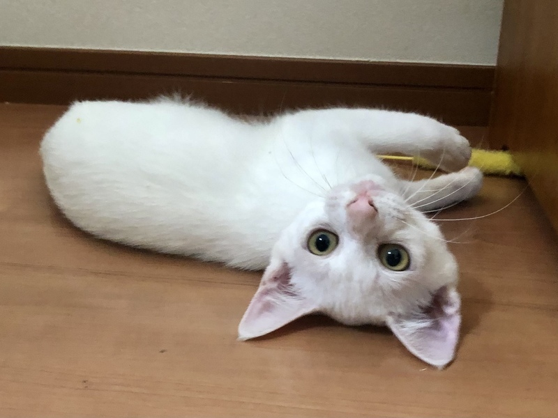 | 特徴(性格など) | 全身白です。 食いしん坊で、寂しがり屋さん。 人にも猫ちゃんにも屈託なく接する事が出来ますので、一緒に暮らしやすいタイプだろうと思います。 |