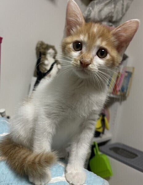 | 特徴(性格など) | ◆ふっつくん 鼻まで茶トラ柄のおっとり男子 ●月齢の小さな子猫は、以下の条件についてご了承の上で応募をご検討下さい。 ◆お留守番の少ないご家族を希望します。 ◆2匹でお迎えくださるご家族を優先いたします。 ◆小さなお子様のいるご家庭は状況によりお断りする場合がございます。 ◆高齢者のみのご家族からの子猫のお申し込みはお受けしていません。 ○千葉県内で保護された身重の猫から生まれました。 ○生後3か月(2022年6月12日生まれ)の、茶白の男の子です。体重は1.16kg(2022年9月13日時点)です。 ○ふわふわの被毛と、鼻柱から口元まで続く茶トラ柄が愛らしいです。 ○兄弟の中では一番おっとりさんです。 ○同じく里親募集中の、ぎおん君とは兄弟です。 ○兄弟で走ってよく遊んでいます。 ○後ろ足肉球奇形がありますが、生活には何の支障もありません。元気にすくすく育っています。 ☆ワクチン1回接種済み。 ☆猫エイズ、猫白血病ともに陰性。 ☆不妊手術は、成長と体調を見て実施予定です。 ☆後ろ足肉球奇形がありますが、生活には何の支障もありません。 ○YouTubeにも動画を上げています。こちらもご覧下さい。 「ふっつ」その1 https://youtu.be/6Tm8jXLdAQc 「ふっつ」その2 https://youtu.be/lUJC3ZKaPXc 「ふっつ」その3 https://youtu.be/dbHFmODmfqk 「ふっつ」と「ぎおん」 https://youtu.be/CVyzgNSDvU0 ○9/25(日)開催の譲渡会に参加予定! 下の要項をお読みいただき、ぜひ会いに来てください♪ ☆★☆★☆★☆★☆★☆★☆★☆★☆★☆★☆ 9月25日(日)荏田にて譲渡会開催! ◎場所・・「島忠 荏田店」 神奈川県横浜市青葉区荏田西1ー3ー14 田園都市線「江田」駅より徒歩約7分 246号線江田駅交差点そば ◎日程・・9月25日(日)(雨天決行) ◎時間・・13時から16時 【15時30分受付終了】 (会場に利用可能な無料駐車場がございます。そちらをご利用くださいませ。) 今回はコロナ対策のため、制限を設けての開催となります。 *3密対策のため、当日12時30分より整理券を配布いたします。 *各回15分 *各回先着3組様 *参加の際は、マスクの着用、アルコール消毒のご協力をお願いいたします。 *当日は検温の上、体温が37度以上の方はご参加いただけません。 *混雑状況により、中止させていただく場合がございます。 ※参加予定の犬猫は体調により参加できない場合があります。ご了承ください。 ☆★☆★☆★☆★☆★☆★☆★☆★☆★☆★☆ |