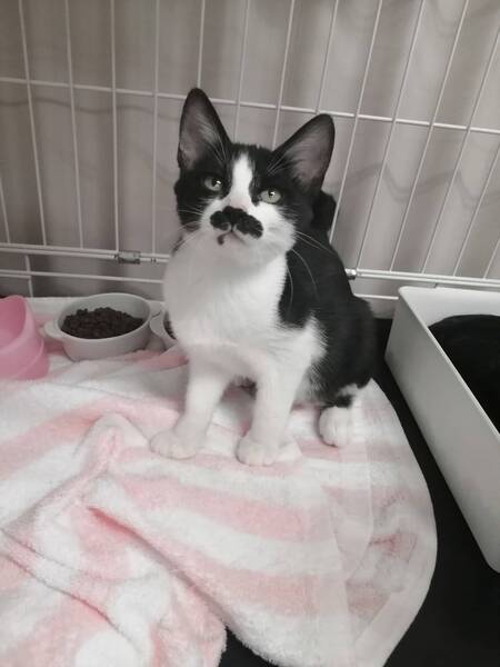| 特徴(性格など) | ちょび髭がチャームポイント甘えん坊の女の子です!顔を見てると思わず笑顔になってしまいます 預かりさんのお宅でワンチャンと暮らしているので、千住猫さんワンチャンのいるご家庭でもすぐにお家に慣れてくれますよ お留守番の長いお家でも大丈夫です |
