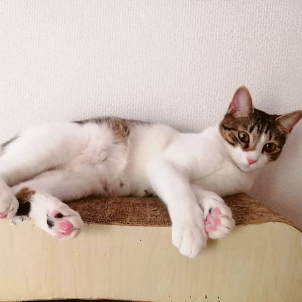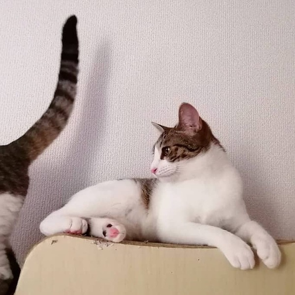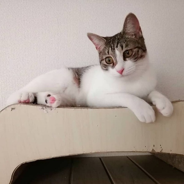 | 特徴(性格など) | 推定2022年5月10日生まれ、キジトラ白の仮名ペプシちゃん♀です。 ペプちゃんは、天真爛漫さと控えめさが共存した実に女の子らしい猫さんです。 が、食事のときは猛獣に早変わり(笑) 里親様は毎日ギャップ萌えできると思います(笑) 我が家に来た当初は、前に出て自己アピールに余念のない(笑)兄妹のしおちゃん♂と比べ、遠慮がちで、まず周囲をよく見てから行動する子でした。 が、それは賢さゆえの行動で、現在はスリスリぴとっと寄り添い甘えるのが得意技となっています! 膝の上に乗るのも大好きです。 我が家の成猫たちにも、毎日上手に甘えています(笑) 兄妹の中でいちばん真菌の程度が重く、毛が生えてくるか心配しましたが、お陰様できれいに完治しました。 保護主のわがままで誠に申し訳ございませんが、単頭飼育は希望しておらず、兄妹のしおちゃん♂とのペアでのご縁を探しています。 里親様には、目に見える形での脱走防止対策の徹底(よろしければ私も一緒に考えます!室内の写真や間取りを持参いただけますと、より具体的なお話ができると思います)と、家庭内事故を防ぐため、安心安全清潔な住環境を必須でお願いしています。 ※ペプちゃんの左目について センターに収容される前に風邪をひいたようで、瞬膜が少し出ています。 現在点眼等の治療の必要はありませんが、うるうる涙目にはよくなります。 (都度拭いてあげるだけで今のところ大丈夫です) ペプちゃんの個性として受け入れてくださる方に託したいです。 ▼保護主Instagram▼ https://www.instagram.com/maruchiyo78/ |