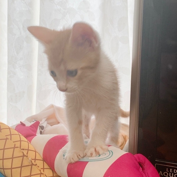 | 特徴(性格など) | 子猫らしくよく遊び、よく眠り、よく食べます。 人間が大好きで、よく肩にやお膝に乗ってきたりする甘えん坊さん。 おっとりしたところもあり、一人遊びも上手にしています。 まだ小さいので、これからどんな子になっていくか、保護主も楽しみです。 兄弟のロケットくんとはとてもいいコンビなので、一緒のお迎えも大歓迎です! 健康管理・脱走対策はしっかりお願いしたいと思っています。 対策等でわからないことは アドバイスさせていただきますので、疑問点などは遠慮なく聞いていただきたいです。 ご自宅の玄関や開ける窓、ケージを置くお部屋などのお写真をご持参いただきますと、より具体的なお話ができると思います。 ▼保護主Instagram▼ https://www.instagram.com/kojikoro1325/ |