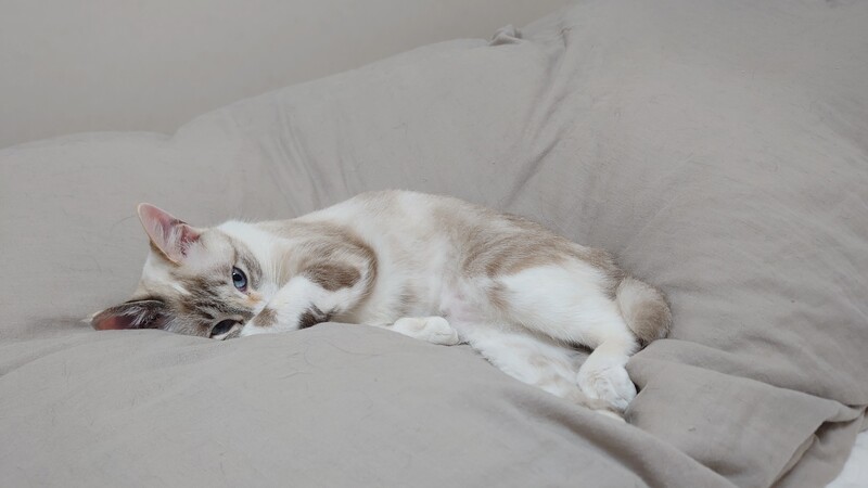 | 特徴(性格など) | シャムミックス系・真っすぐ尻尾・青い目の綺麗な子です。 甘えん坊で人懐こく、まだ仔猫のようなところがあります。 エイズキャリアですが発症はしておりません。 猫が好きなので、同じエイズキャリアの先住猫さんが居る環境だと嬉しいです。 【猫白血病:陰性 / 猫エイズ:陽性 】 |
