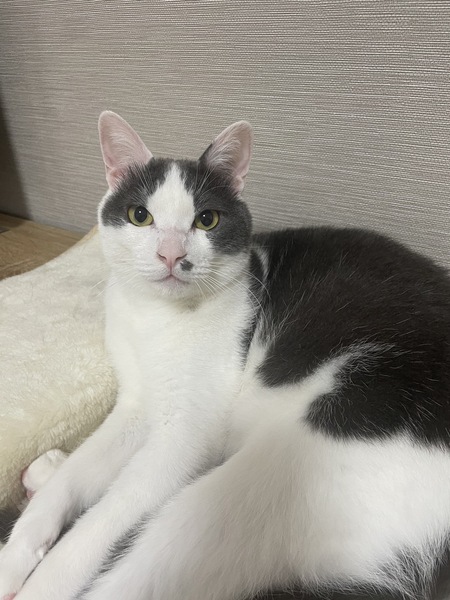 | 特徴(性格など) | 警戒心強めで人馴れ修行中です? グレー×白でちょび髭が左にズレたような柄がとっても可愛い男の子❤︎おやつやご飯の時はニャンニャン鳴きながら寄ってきます? 話しかけると時々ニャッと返事をしてくれるような、、?舌をしまい忘れがちなところも可愛いポイントの1つ? 見てるだけで癒されるモチモチフォルムです? ① 1人が好き ② 警戒心強め ③ 人見知り ツン9:デレ1 ご飯よりもおやつ派 おやつ渡す時可愛い声で鳴き、がっつく食いしん坊。 他の2匹の分横取りする程積極的です。 ナー君と兄弟で一緒に追いかけっこして遊んでます。 ボールより猫じゃらし派 |