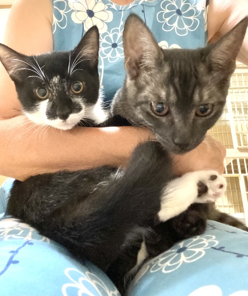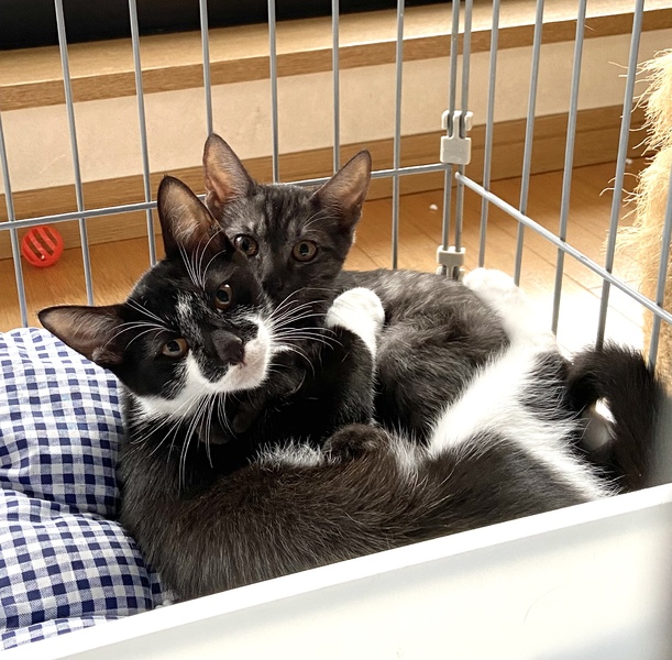 | 特徴(性格など) | 風邪もひいた事なく健康で元気いっぱいの2匹です。 ・レボリューション済み ・検便 虫下し済み ・3種混合ワクチン済み(近日中に2回目接種予定です) ・ウイルス検査(エイズ 白血病共に陰性) 珍しいグレースモークの女の子、 アンダーコートは白、甘えん坊で抱っこも大丈夫の美猫です。 白黒の男の子 女の子をいつも守って抱き合って寝てます。黒多めの白黒で愛嬌のあるお顔。 甘え下手なので女の子が甘えると僕も〜って後ろから寄ってきます。優しい性格です。 2匹共テールの高さがあり綺麗な長い尻尾してます。 2匹は兄妹です。 |
