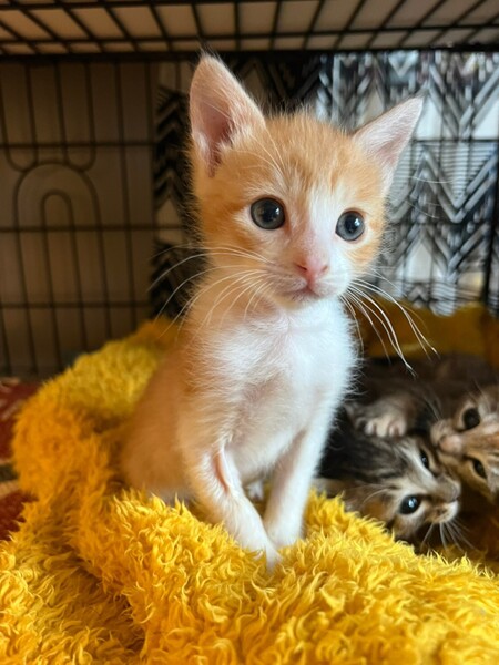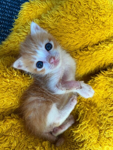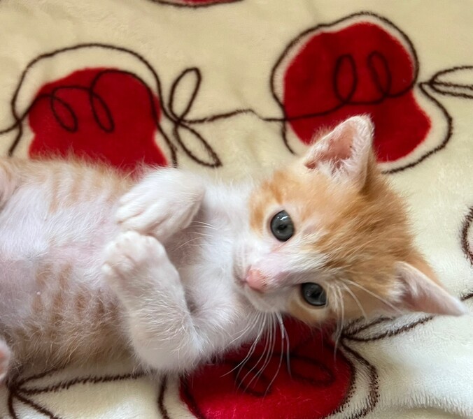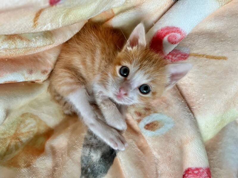 | 特徴(性格など) | 【仮名】プチョ 【生年月日】推定2022/8/8生まれ 【種類】MIX 【毛色】レッドタビー&ホワイト 【性別】オス 【去勢】未 【ワクチン】未(生後2か月頃予定) 【駆虫】近日予定 【健康状態】良好 【性格】掃除機が大嫌いのビビりな男の子。 元気に遊ぶけれど猫一倍甘えん坊で、抱っこ大好き! 膝の上に来て前足をチューチュー吸いながらゴロゴロ言って寝るのが大好きです。 出来れば一緒に寝たい位の甘えん坊ですが、夜はケージ内でも寝れます。 先がクリンクリンに巻いたシッポがチャームポイント♡ |