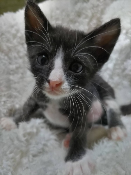 | 特徴(性格など) | 黒白八割の愛くるしい男の子おとちゃんです。 へその緒がついてる時から、人の手で育てたため、人は母猫と思っているかのように、なついています。 妹?のなこちゃんと一緒によく遊びます。 |
