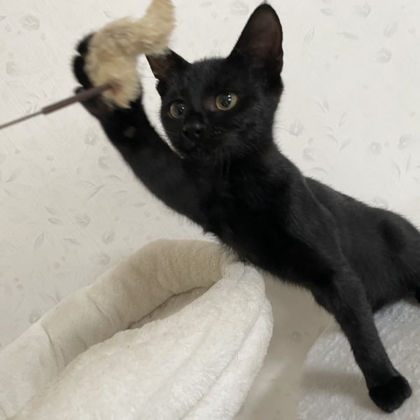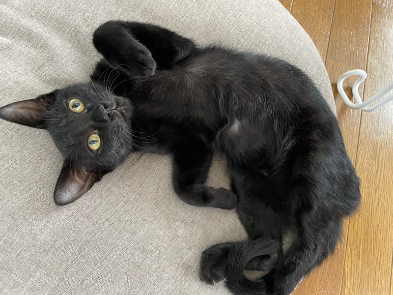 | 特徴(性格など) | 生後5ヶ月程度の黒猫の男の子です! 保護時より左後ろ足の肉球が3分の2ほどない状態でしたが、歩くこと、走ることも問題なくできます! (歩く際は左後ろ足を上げて歩く事もあります。走ると早すぎて追いつけないくらい走れます!) キャットタワーなどの高いところにも登れますし、ジャンプもできます。 病院でも診て頂きましたが、きちんと足裏をついて歩いているので問題ないとのことでした。 保護時はとてもビビりくんでしたが、今ではとても甘えん坊のイケメン黒猫くんになりました! すぐにお腹をみせてゴロンして甘えてきます!とってもかわいいです☆ 健康状態は良好です。 猫風邪の影響でたまにくしゃみがでることがありますので、病院のお薬を投与中です。 ウイルス検査 陰性 ノミダニのお薬 塗布済み お腹の虫のお薬 投与済み |