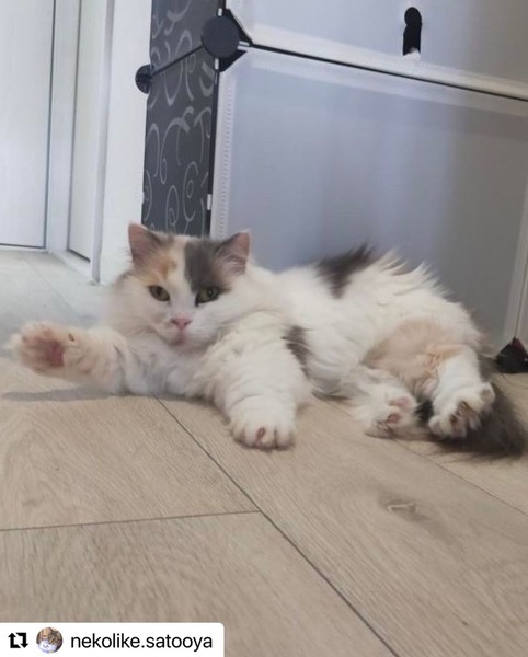 | 特徴(性格など) | 人なれ度MAX!でもビビりで少しの物音でびっくりします。 でもすごく甘えん坊で、ごろごろスリスリ…構ってほしいとついてきます。 さびしがりですので、多頭飼いか一匹にならない環境を希望しています。 |