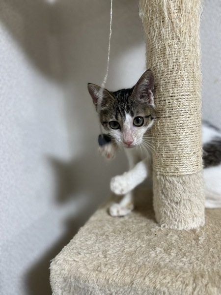 | 特徴(性格など) | とっても甘えん坊、人見知りなし、先住猫や犬にもゴロゴロ喉を鳴らしながら甘えて、スリスリデレデレ、遊んでは甘え、食べては甘え、寝ては甘え、一度抱くと虜になること間違いなし 検便、ノミダニ駆除済み、エイズ、白血病ウイルス検査陰性、3種混合ワクチン1回目接種済 |