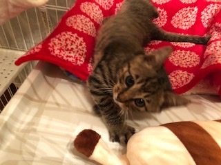 | 特徴(性格など) | <初期医療> 健康状態:良好 ウイルス検査:陰性 ワクチン接種:済み ノミダニ駆除薬:済み 糞便検査:済み 1.5ヶ月のとにかく可愛いキジトラ子猫です。フードもよく食べ、トイレもバッチリです。 抱っこも大好きで、ゴロゴロ甘えてきます。いっぱい遊んでスヤス寝ています。 初心者のご家族様で大丈夫です。 子猫なので、お留守番の少ないおうちを希望します。 |