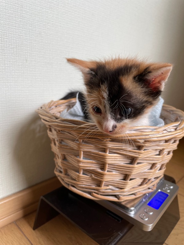 | 特徴(性格など) | 9/7に母猫と一緒に子猫4兄妹を保護しました 猫風邪もひいておらず、食欲もあり元気いっぱいです 9/1生まれの生後約1.5ヶ月、体重は約650g、ミケの女の子で尻尾は真っすぐです 乳歯が生えてきてウェットフードが美味しいのかモリモリ食べています ドライフードも頑張ってかじりながら挑戦しているところが可愛いんです 元気いっぱいでぴょんぴょん走り回って何にでも興味を示しています 自分でトイレへ行ってちゃんとするようになり、粗相はありません ・ブロードライン済(9/7) ・予防接種(10/29予定) ・ウィルス検査(10/29予定) 母猫はエイズ白血病どちらも陰性です |