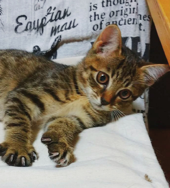 | 里親募集する理由 | 我が家の庭とお隣さんの庭で大きな声で鳴いていました。 その半日中に、母猫とはぐれたか、遺棄されたと考えます。 子猫は人慣れしており、人間の子供と遊ぶと落ち着きました。 野良猫の子猫はこんなに急に慣れることは少ないと思いますので、人間のいる環境で生まれ育ったと考えます。 2か月でまだ幼く、里親に迎えていただけるチャンスがあればと募集しました。 |