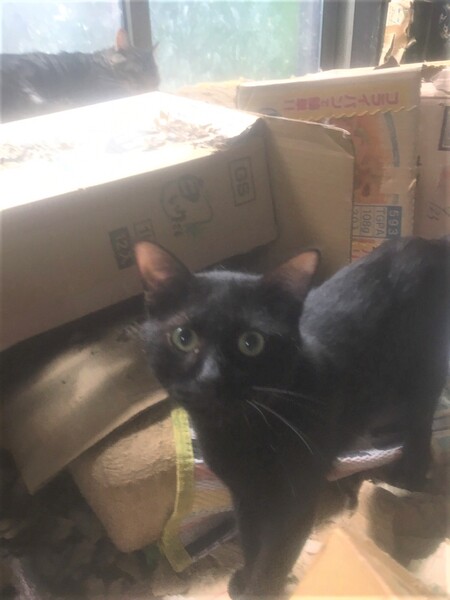 | 特徴(性格など) | 空(くう) しっぽの長い黒猫。小柄で、まだ子供っぽく、好奇心旺盛でよく遊んでいます。 赤ちゃんの時に保護され、多頭飼育の環境で暮らしてきました。性格は温和で大人しい優しい子です。時間と共に可愛い伴侶になってくれるタイプです。 空、識、迦楼羅は3兄妹です。 ・エイズ白血病共に陰性 ・不妊手術済・ワクチン3種済 ・ノミダニ駆除済 |