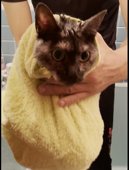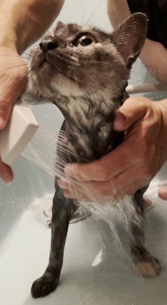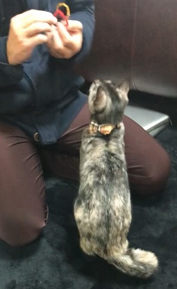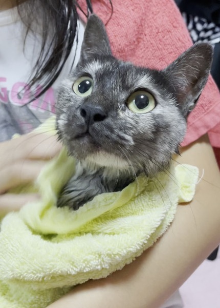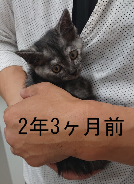 | 特徴(性格など) | 動物病院のお医者さんから「この柄のネコは珍しい」と言われるくらい、オンリーワンな柄で、サバトラ系のカギ尻尾ちゃんです。右手が黒で左手が白という色違いがチャームポイントです。体重2kgで小柄でスマートです。 「ネコは家につく」と言いますが、ココちゃんは「人につく」というような甘えん坊です。足にスリスリしたがるので、歩くときに気をつけないと蹴飛ばしてしまう可能性があります。 台風が特に苦手で、家族にべったりになります。 知らない人が来たときは「ササッ」と身を隠す一方で、徐々に心を開いていく柔軟性も持ち合わせております。 排泄はトイレでしてくれます。お風呂は非常に大人しく入ってくれますし、爪切りも手際よくすれば逃げ出すことも少なく、とてもお世話しやすい子だと思います。 好奇心旺盛で遊び好きですが、家ネコで外に出たことがないので、たまに外に抱っこして出ても忍者のように家に逃げ帰る臆病な側面もあります。 |
