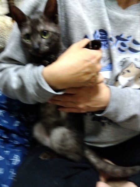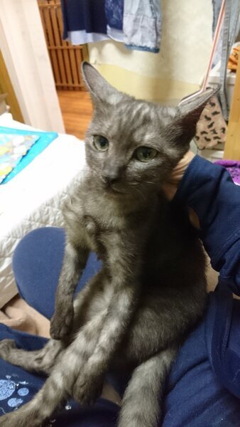 | 特徴(性格など) | 毛色 チャコグレー 瞳 金色 しっぽは長いです。 甘えん坊の構ってちゃんです。 肩に乗るのが大好き、抱っこも好きです。 |